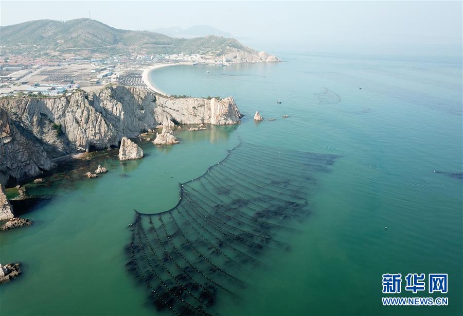 這是大欽島鄉(xiāng)附近海域的海帶養(yǎng)殖區(qū)(5月23日無(wú)人機(jī)拍攝)。新華社記者 朱崢 攝