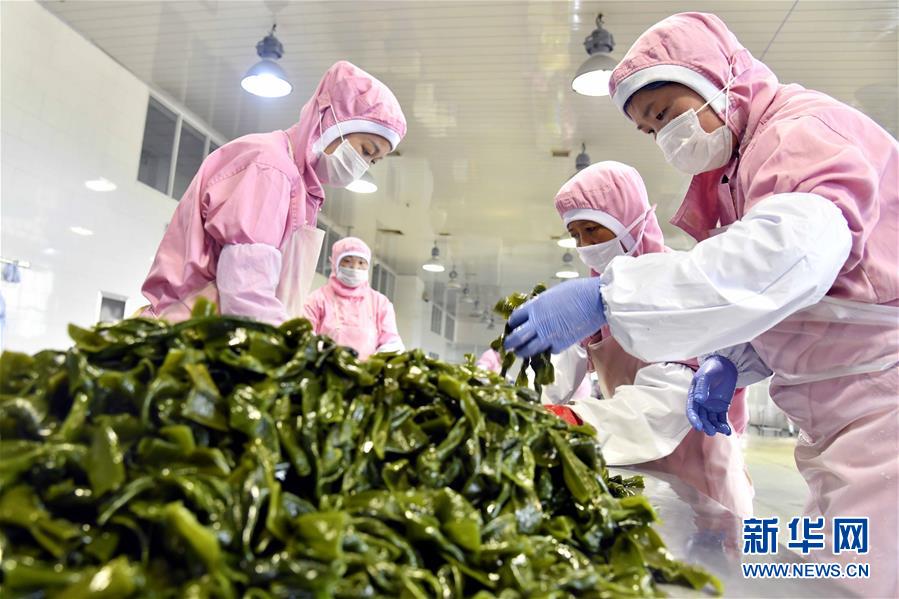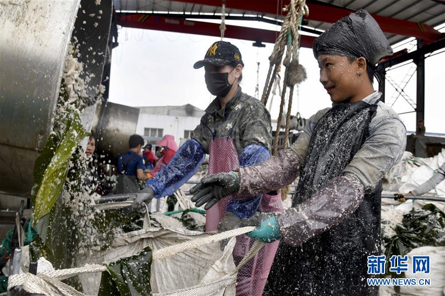4月10日,霞浦縣長(zhǎng)春鎮(zhèn)埕塢村一家海帶加工廠內(nèi),工人在搬運(yùn)剛收獲的海帶。近日,福建省寧德市霞浦縣30余萬(wàn)畝養(yǎng)殖海帶進(jìn)入收獲季節(jié),當(dāng)?shù)仞B(yǎng)殖戶搶抓晴好天氣,收獲海帶。海帶養(yǎng)殖是霞浦縣群眾增收致富的支柱產(chǎn)業(yè)。2018年該縣海帶產(chǎn)量14萬(wàn)余噸。新華社記者 姜克紅 攝
