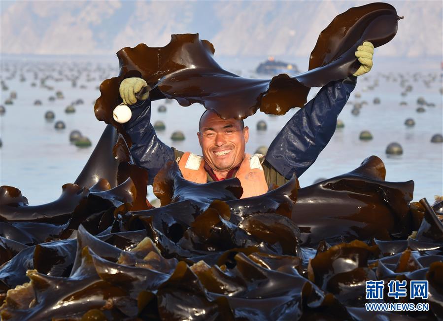 海島居民展示剛剛收獲的海帶(5月24日攝)。新華社記者 朱崢 攝