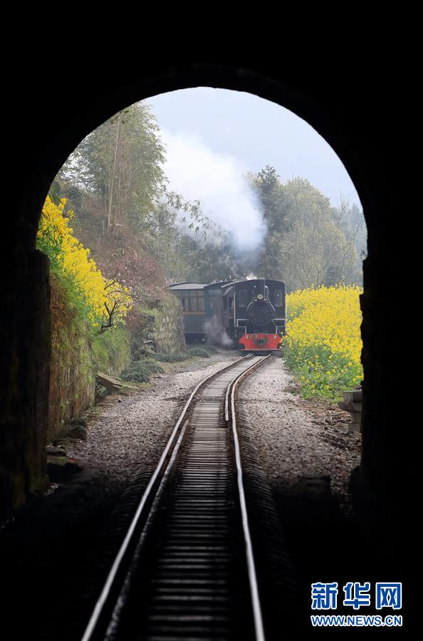 3月20日,一列嘉陽小火車經(jīng)過老鷹嘴段。