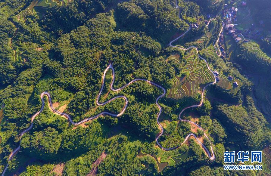 這是融水苗族自治縣桿洞鄉(xiāng)歸江村的村屯公路(6月19日無人機(jī)拍攝)。新華社記者 黃孝邦 攝