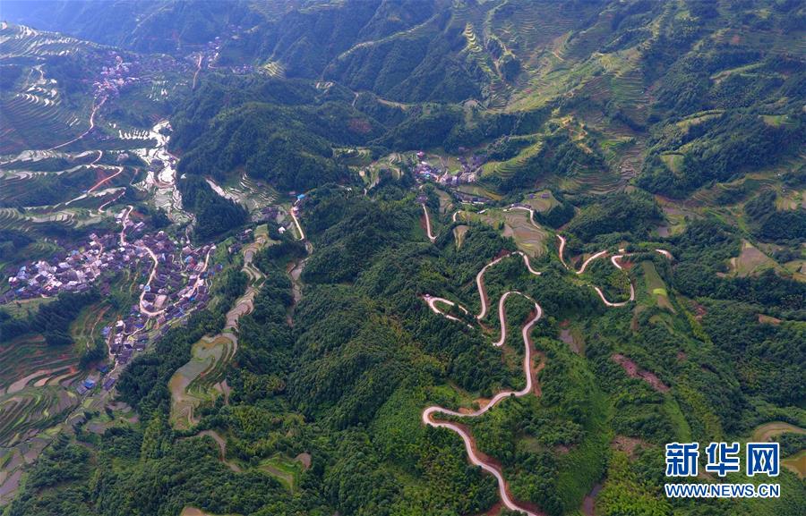 這是融水苗族自治縣桿洞鄉(xiāng)歸江村的村屯公路(6月19日無人機拍攝)。新華社記者 黃孝邦 攝