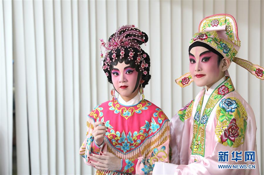 陸瑞徽(左)和利文喆在表演折子戲《艷曲醉周郎》(6月8日攝)。 聲輝粵劇推廣協(xié)會(huì)成立于2003年,是香港重要粵劇藝術(shù)團(tuán)體之一,致力于向青少年推廣粵劇。協(xié)會(huì)目前有兩個(gè)初班,3個(gè)中班,一個(gè)青少年班。粵劇又稱“廣東大戲”,表演技藝包括“唱做念打”,即唱功、身段、臺(tái)詞、武打,主要流行于廣東、廣西和香港、澳門等地區(qū)。2009年,粵劇被列入聯(lián)合國教科文組織人類非物質(zhì)文化遺產(chǎn)代表作名錄,今年正逢十周年。 新華社記者 吳曉初 攝