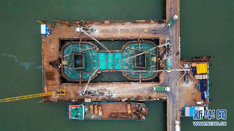 這是7月6日無人機拍攝的湛江調(diào)順跨海大橋東岸主塔墩承臺建設現(xiàn)場。 新華社記者 劉大偉 攝