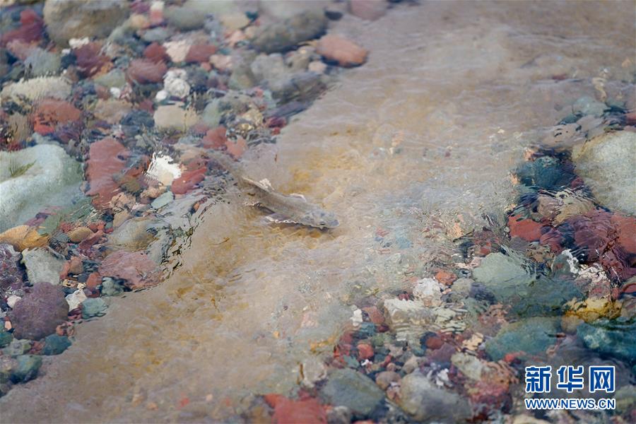 7月6日,在青海省剛察縣沙柳河里,一只湟魚向上洄游。 新華社記者 吳剛攝