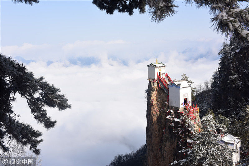 2019年3月3日,陜西商洛,位于鎮(zhèn)安縣的塔云山景區(qū)云海翻騰,宛如仙境。