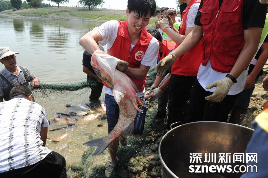 近日,成都電子科技大學東湖岸邊開始熱鬧起來,現場幾十位師生正在等待畢業(yè)季一項特別的活動,他們將親手捕撈起水里的大魚,為當天晚上的畢業(yè)免費大餐做準備。