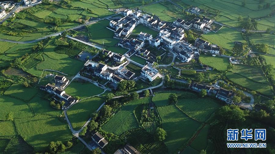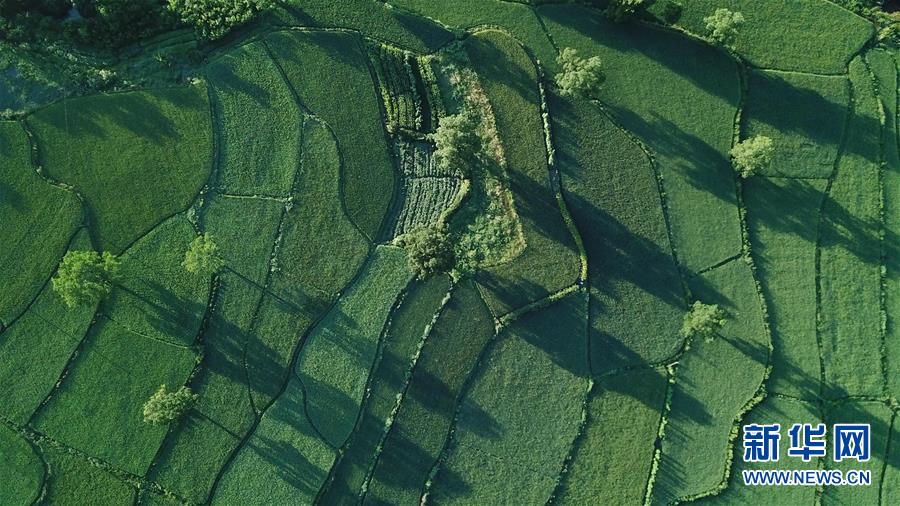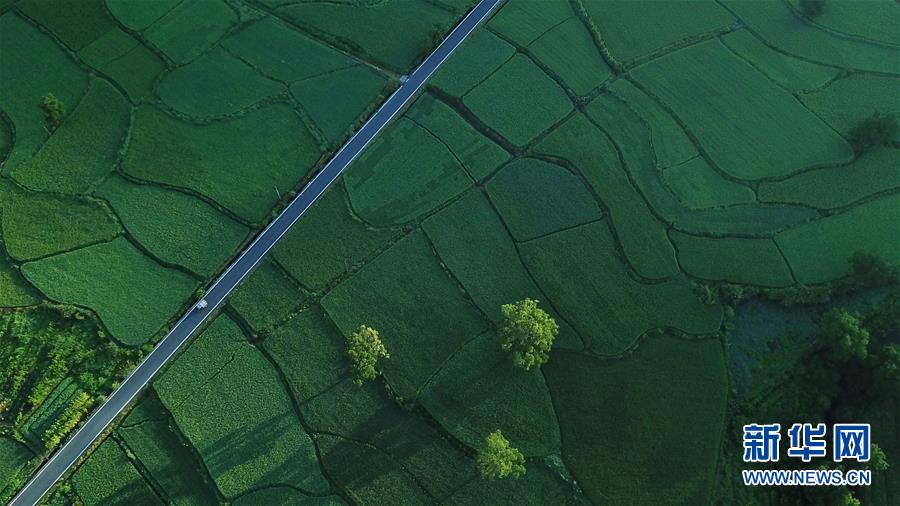 這是8月4日無人機拍攝的安徽黟縣宏村風景區(qū)附近的農田。新華社記者 張端 攝