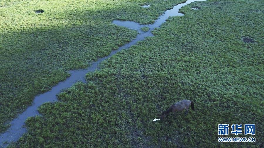這是8月4日無人機拍攝的安徽黟縣宏村風景區(qū)附近的荷塘。新華社記者 張端 攝