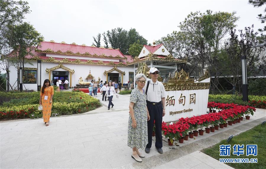 8月4日,參觀者在緬甸展園內(nèi)參觀。新華社記者 鞠煥宗 攝