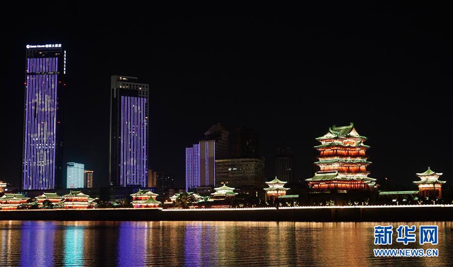 這是江西南昌贛江畔上演的燈光秀(8月6日攝)。 夏季,江西南昌市贛江畔高樓燈光璀璨,五光十色的燈光組成了壯觀的燈光秀,吸引了大批游客。據(jù)介紹,近年來,南昌為發(fā)展“夜經(jīng)濟(jì)”,著力打造夜游項(xiàng)目,夜游項(xiàng)目以滕王閣為核心,借助贛江兩岸景觀照明,結(jié)合同步音效,打造立體、動(dòng)態(tài)、富有江西元素的風(fēng)景,讓游客感受夜景的美麗和江西的歷史文化。 新華社記者 萬象 攝