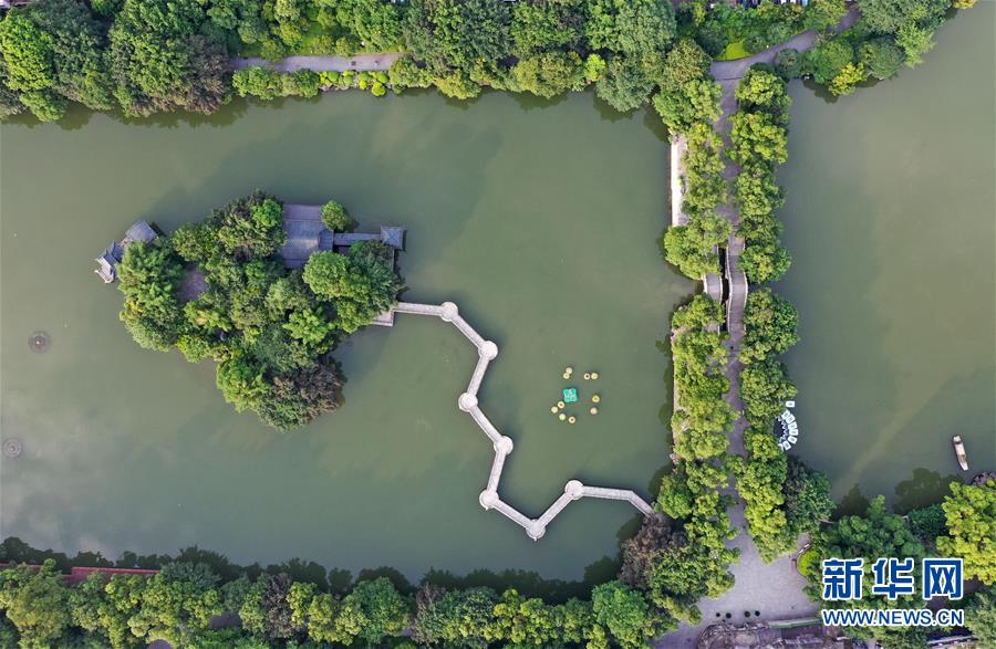 桂林市榕湖景觀(7月1日無人機拍攝)。 夏日時節(jié),廣西桂林市區(qū)內(nèi)的榕湖、杉湖、桂湖、木龍湖等地綠樹成蔭、景色迷人。 新華社記者陸波岸攝