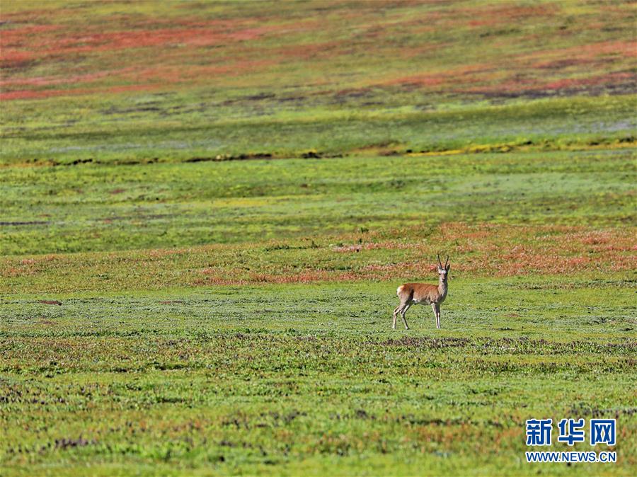 一只藏原羚在草原上駐足(8月14日攝)。 8月12日至14日,來自全國(guó)各地的31名自然愛好者聚集在海拔4200米的青海省玉樹藏族自治州稱多縣嘉塘草原,參加“2019嘉塘自然觀察節(jié)”。自然愛好者用獨(dú)特視角記錄珍稀野生動(dòng)植物,觀察三江源生態(tài)。 新華社記者 張大川 攝