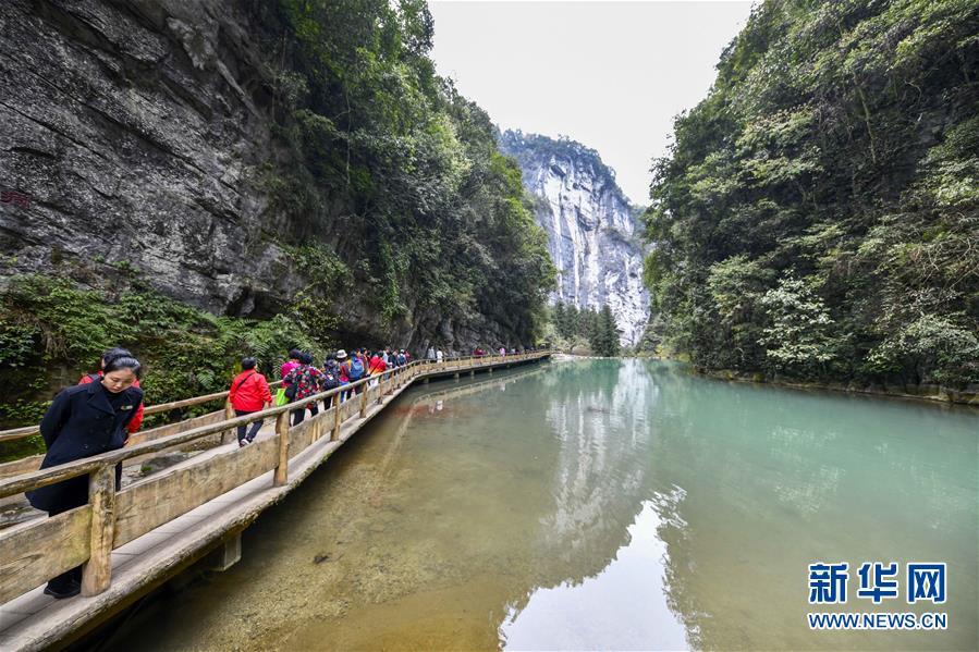 游客在天生三橋景區(qū)游覽(3月27日攝)。 隨著天氣轉(zhuǎn)暖,重慶武隆天生三橋景區(qū)風(fēng)景如畫,氣勢(shì)磅礴的天生石橋和綠意盎然的山林相映成趣,吸引眾多游客前來踏春賞景。 新華社記者劉潺攝