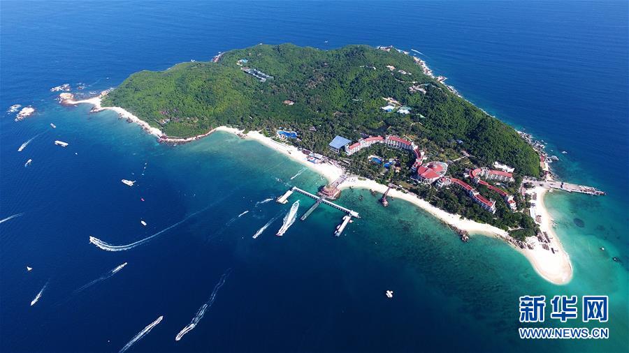 這是三亞蜈支洲島景區(qū)(2018年8月4日無人機拍攝)。新華社記者郭程攝