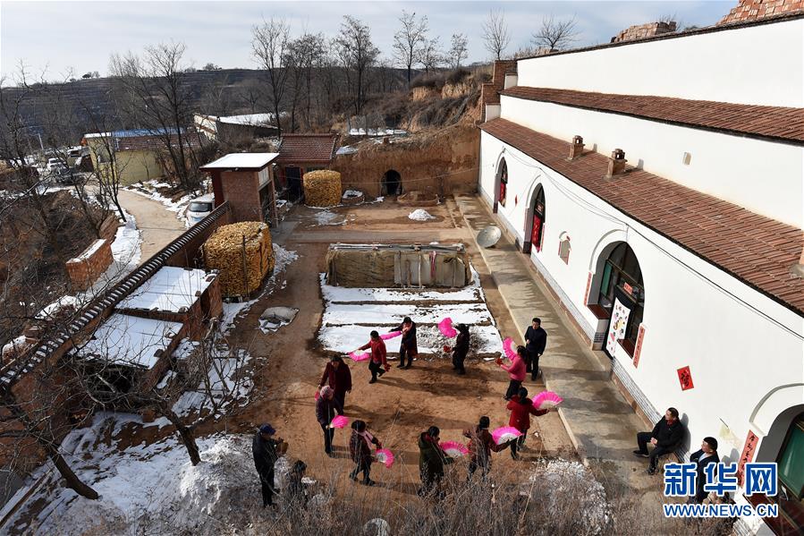 在武鄉(xiāng)縣大有鄉(xiāng)王莊溝村,村民們在排練節(jié)目(2月15日攝)。 新華社記者 詹彥 攝