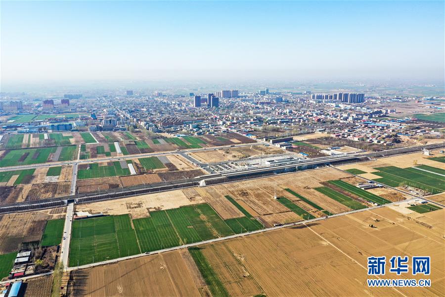 4月1日無人機(jī)拍攝的雄安新區(qū)白洋淀站。新華社記者王建華攝