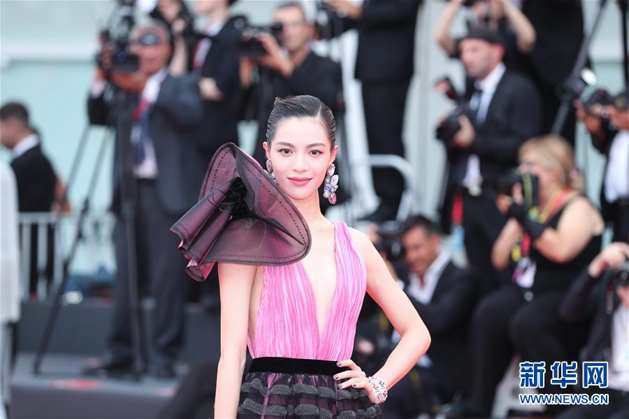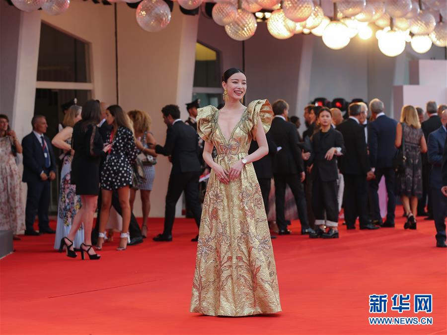 8月28日,在意大利威尼斯,中國演員鐘楚曦亮相開幕式紅毯。新華社記者 程婷婷 攝