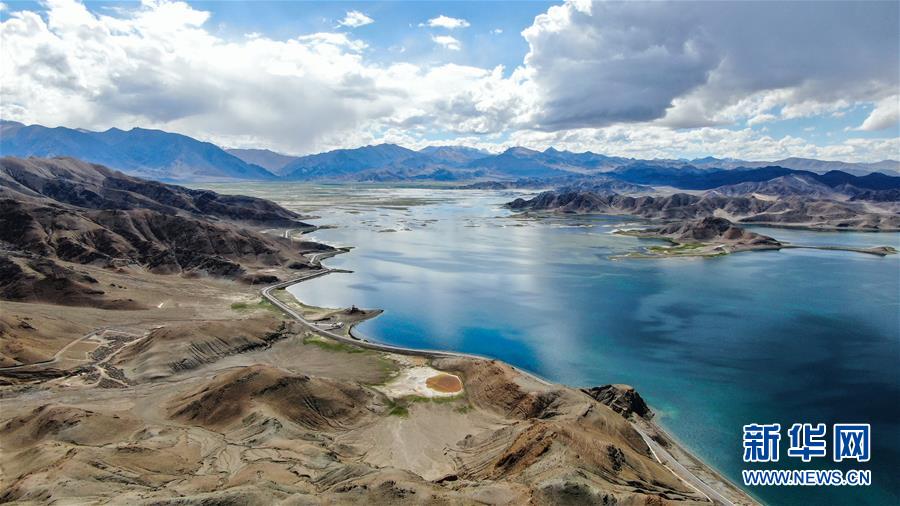 西藏阿里地區(qū)日土縣境內(nèi)的班公錯(8月3日無人機拍攝)。新華社記者 晉美多吉 攝