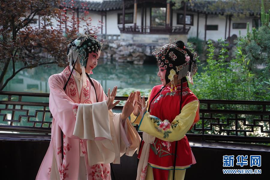 昆劇演員在蘇州網(wǎng)師園排練(5月22日攝)。 新華社記者 季春鵬 攝