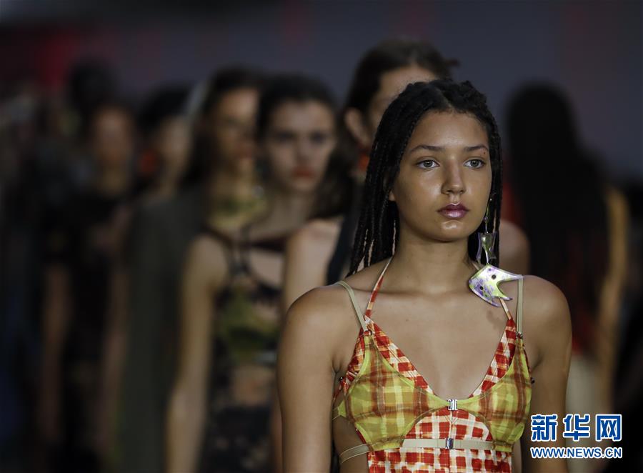 9月17日,在英國(guó)倫敦,模特在2020倫敦春夏時(shí)裝周上展示Charlotte Knowles品牌服飾。 新華社記者 韓巖 攝