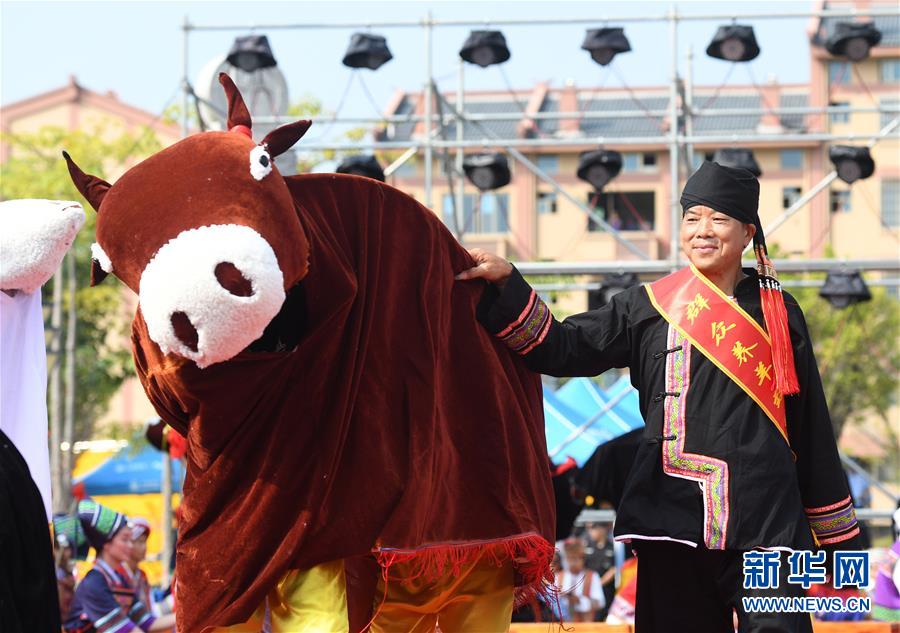 9月17日,廣西都安瑤族自治縣密洛陀文化公園廣場,演員在啟動儀式上表演節(jié)目。 新華社記者 陸波岸 攝