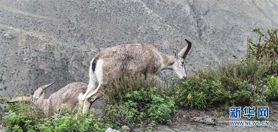 兩只巖羊在西藏山南市洛扎縣色鄉(xiāng)海拔4000米左右的盤山路邊,悠閑地吃著野果青草(9月22日攝)。 在西藏山南市洛扎縣色鄉(xiāng)海拔4000米左右的盤山路上,一群巖羊悠閑地吃著野果青草,完全不介意來(lái)往的車輛、行人和近在咫尺的鏡頭。 巖羊是國(guó)家二級(jí)保護(hù)動(dòng)物。近年來(lái),隨著西藏生態(tài)保護(hù)力度加大,巖羊數(shù)量不斷增加。 新華社記者 晉美多吉 攝