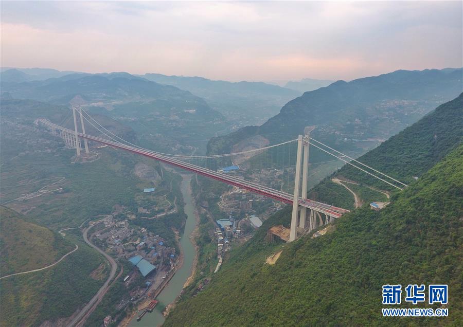 赤水河紅軍大橋全長(zhǎng)2009米,主跨1200米,主塔高243.5米,在全國(guó)山區(qū)同類型鋼桁梁懸索橋梁中排名前列,由四川省鐵投集團(tuán)投資、四川路橋集團(tuán)承建,于2017年上半年開(kāi)工。 新華社記者劉坤攝