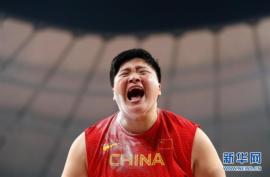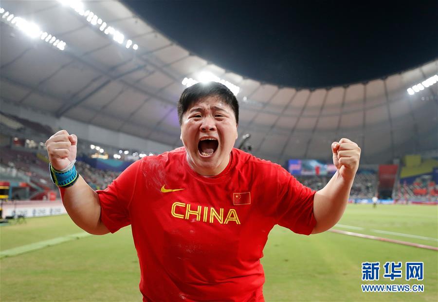 當日,在卡塔爾多哈舉行的2019國際田聯(lián)世界田徑錦標賽女子鉛球決賽中,衛(wèi)冕冠軍、中國選手鞏立姣以19米55的成績奪得冠軍。 新華社記者賈宇辰攝