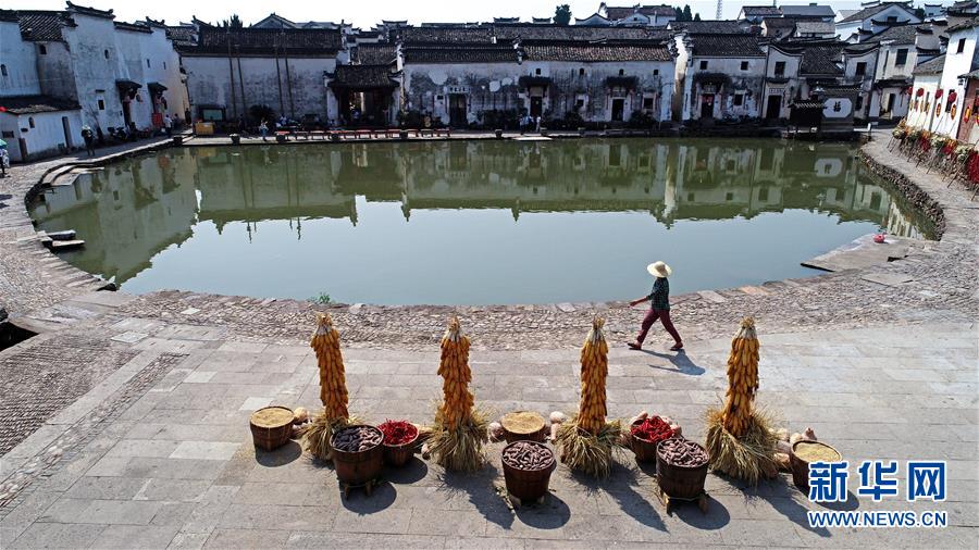 10月5日,新葉古村內(nèi)的“曬秋”美景。新華社記者徐昱攝