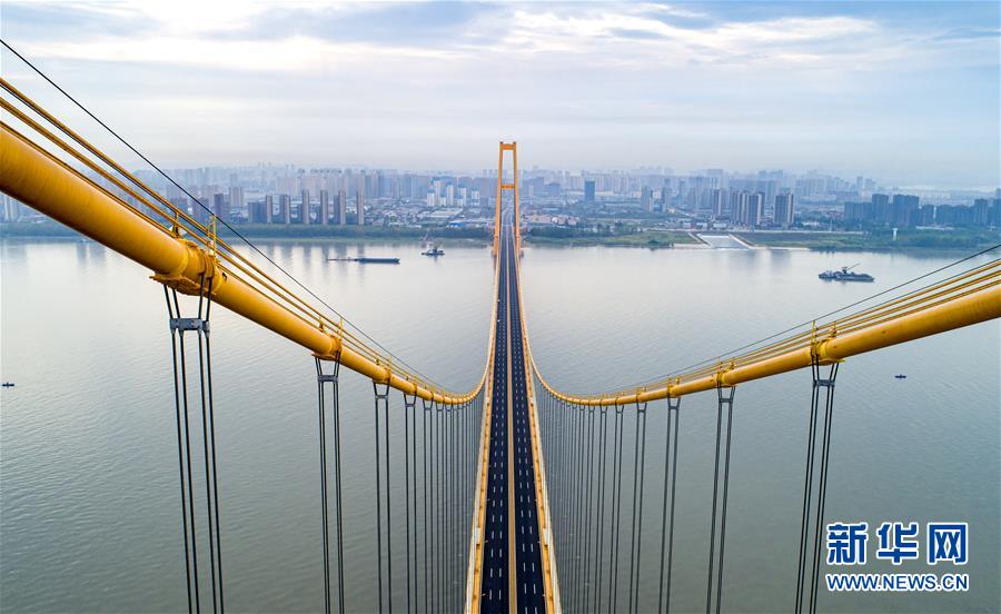 武漢楊泗港長江大橋(9月25日無人機(jī)拍攝)。新華社記者熊琦攝