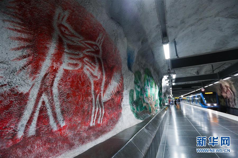 10月8日,在瑞典斯德哥爾摩,一列地鐵抵達(dá)一處地鐵站。新華社記者鄭煥松攝