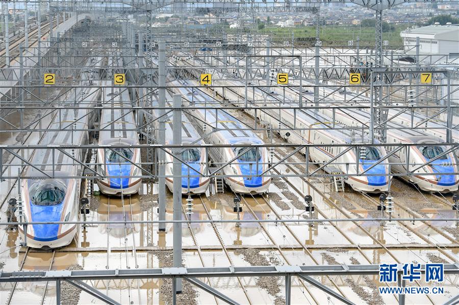 10月14日,在日本長野市,東日本鐵路公司長野新干線車輛中心的新干線列車被洪水浸泡。受縱貫東日本強臺風(fēng)“海貝思”帶來的強降雨影響,日本多地暴發(fā)洪災(zāi),已造成33人死亡、19人失蹤。據(jù)日本共同社13日統(tǒng)計,“海貝思”過境導(dǎo)致日本多處河流泛濫,目前有21條河流決堤24處。其中,流經(jīng)長野縣的千曲川決堤,造成長野市和千曲市大范圍被淹,大片住宅區(qū)被洪水包圍,有的房屋甚至被淹至2層。新華社記者華義攝