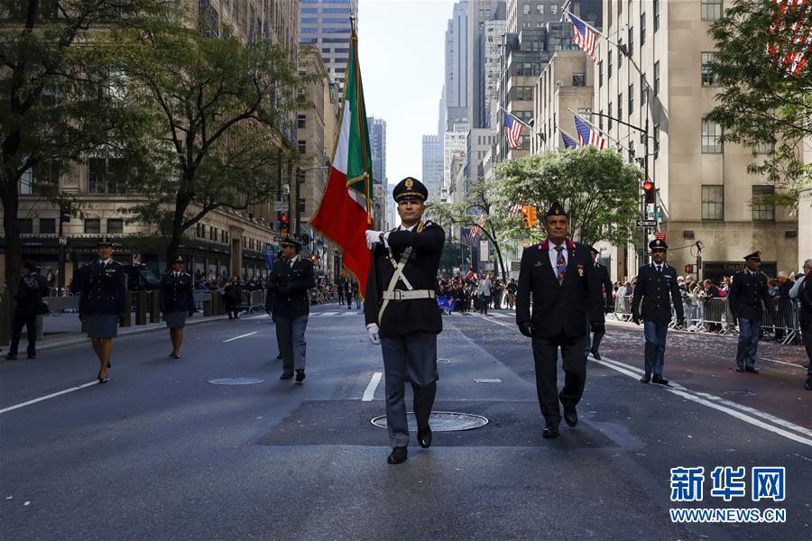 10月14日,在美國紐約曼哈頓第五大道,人們參加哥倫布日游行。當天,紐約舉行哥倫布日游行,紀念意大利航海家克里斯托弗·哥倫布首次到達美洲大陸。哥倫布日游行也是美國最大的展示意大利文化傳統(tǒng)的慶?;顒?。新華社記者李木子攝