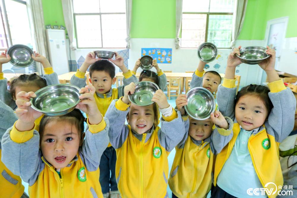 2019年10月14日,江西省吉安市峽江縣幼兒園的孩子們?cè)谡故咀约猴埡蟾蓛舻娘埻搿D片來源:視覺中國