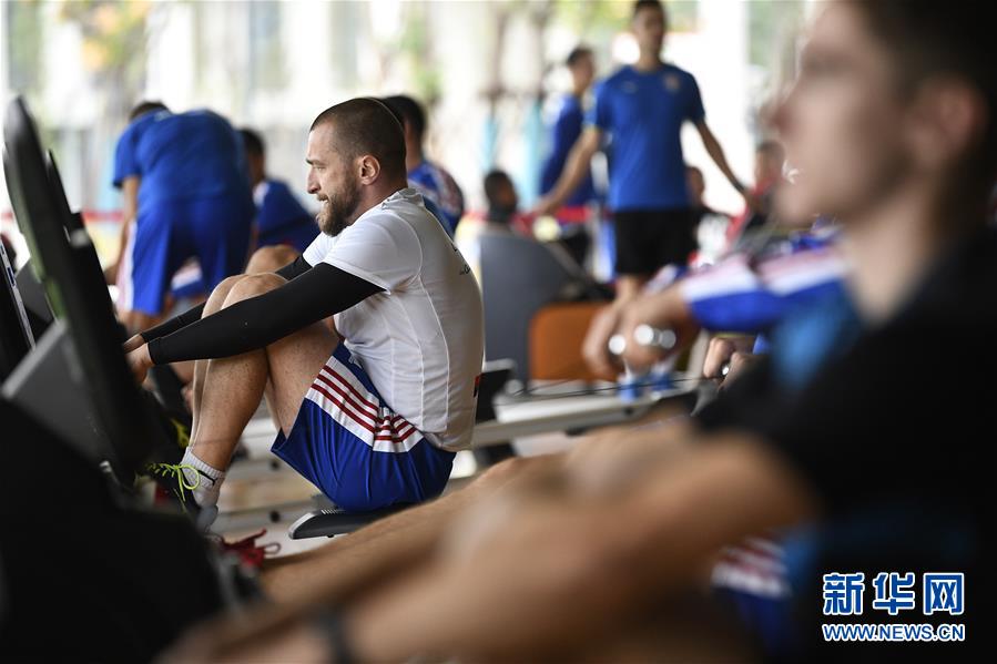10月16日,運動員在軍運村內的健身中心鍛煉。新華社記者王鵬攝