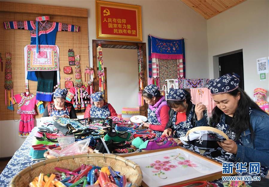 10月16日,團(tuán)結(jié)村的幾名“巧媳婦”在刺繡。
