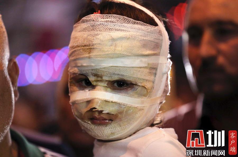 當(dāng)?shù)貢r(shí)間2016年7月9日,伊拉克卡拉達(dá),4歲的Asal Ahmed在爆炸現(xiàn)場(chǎng)被爸爸抱著。開(kāi)齋節(jié)期間,Asal和媽媽一起逛街,結(jié)果碰上一起自殺性炸彈襲擊,兩人都嚴(yán)重?zé)齻?/p>