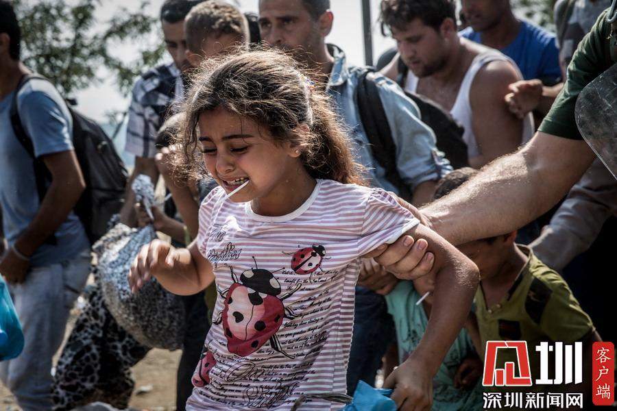 當(dāng)?shù)貢r(shí)間2015年8月26日,馬其頓蓋夫蓋利亞,一名敘利亞女孩越過(guò)馬其頓與希臘的邊境。