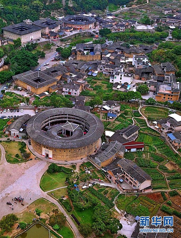 這是福建省龍巖市永定區(qū)湖坑鎮(zhèn)洪坑村土樓群全景(5月4日無人機(jī)拍攝)。新華社記者魏培全攝