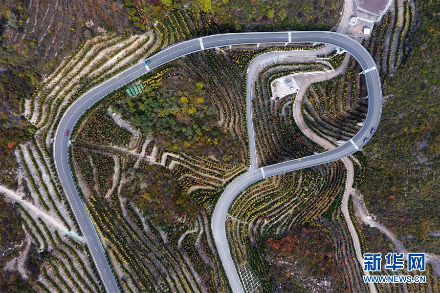 車輛行駛在山西省太原市玉泉山盤山公路上(10月22日無人機(jī)拍攝)。