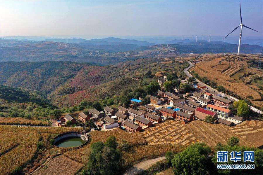 山西省晉城市陵川縣奪火鄉(xiāng)高谷堆村附近的景色(10月13日無(wú)人機(jī)拍攝)。