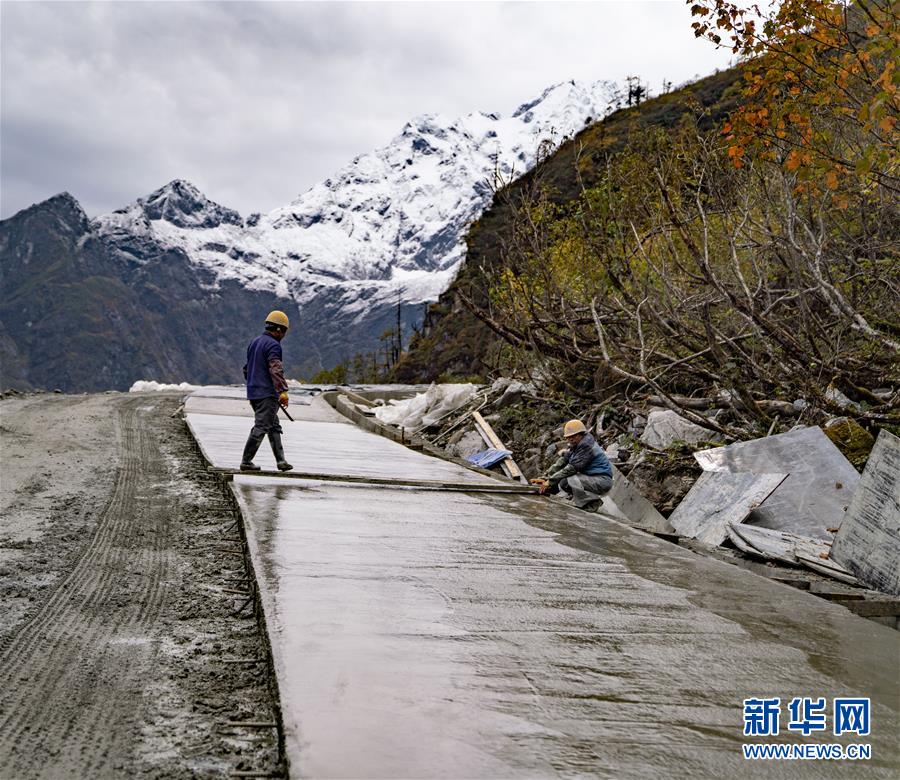 工人們在派墨農(nóng)村公路施工現(xiàn)場作業(yè)(10月24日攝)。新華社記者李鑫攝