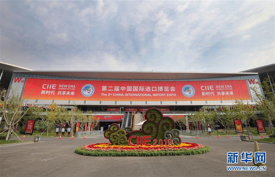 這是10月25日拍攝的國家會展中心(上海)西入口處。 第二屆中國國際進口博覽會開幕在即,在進博會舉辦地、國家會展中心(上海)內(nèi),展館搭建施工人員和展會志愿者們在進行從展臺搭建到完善觀展標(biāo)識等的布展準(zhǔn)備工作。   新華社記者 方喆攝