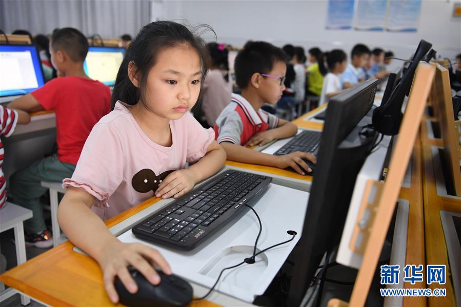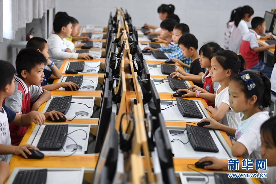 9月3日,金寨縣希望小學(xué)南校區(qū)學(xué)生在上計算機課。新華社記者張端攝