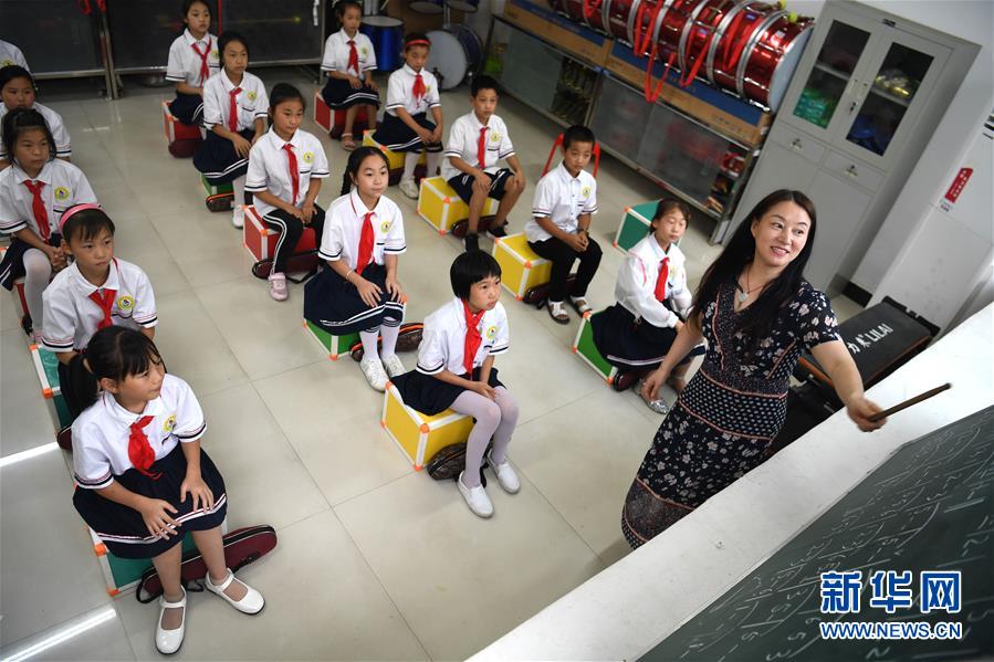 9月3日,金寨縣希望小學(xué)學(xué)生在上音樂課。新華社記者劉軍喜攝
