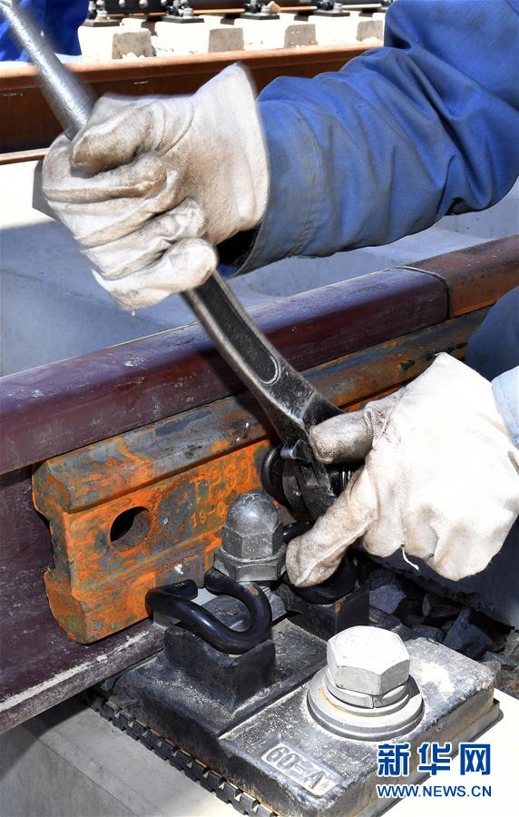 6月6日,負(fù)責(zé)鋪軌的中鐵十一局集團(tuán)的建設(shè)者在現(xiàn)場(chǎng)作業(yè)。新華社記者覺果攝