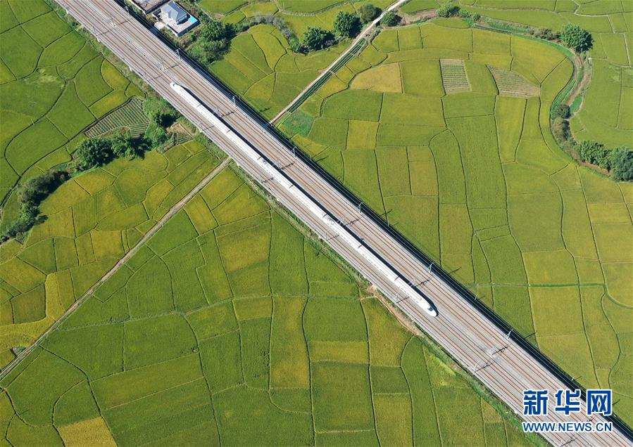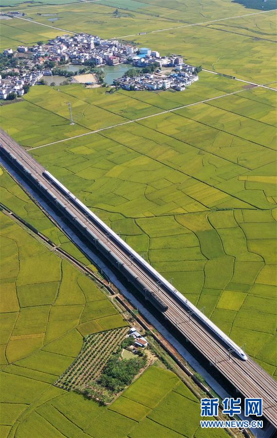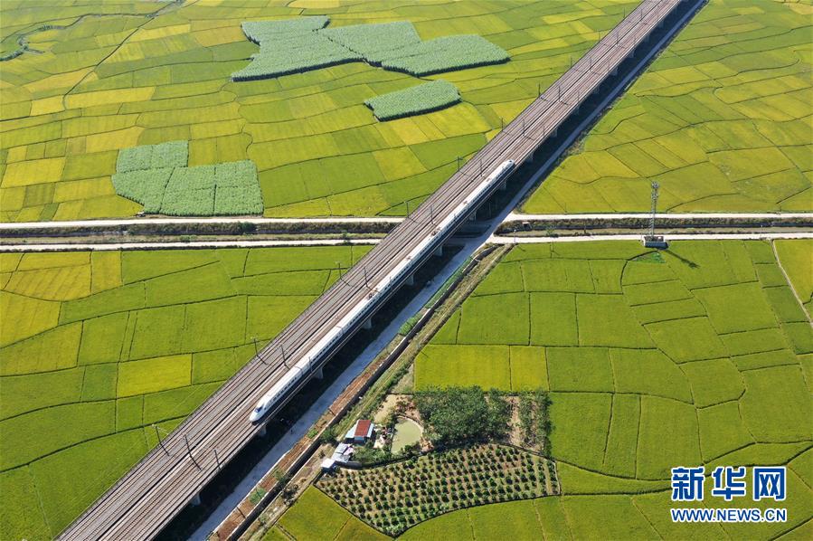 眼下,廣西賓陽縣古辣鎮(zhèn)大面積稻田進(jìn)入收獲期,一列列南來北往的動車從稻田間飛馳而過,構(gòu)成一幅幅美麗的豐收圖畫。