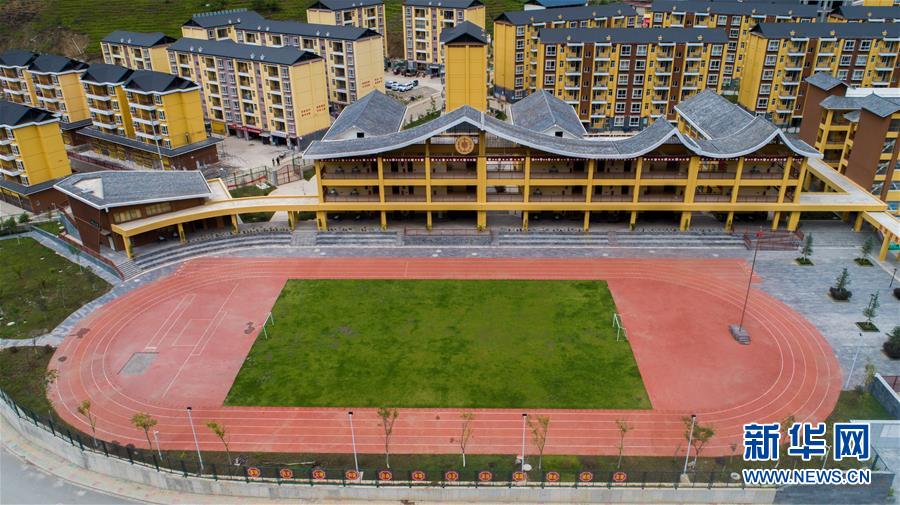 建于怒江邊的大興地鎮(zhèn)維拉壩“珠海小區(qū)”內(nèi)的學(xué)校和住房已初現(xiàn)規(guī)模(6月24日無人機拍攝)。新華社記者胡超攝