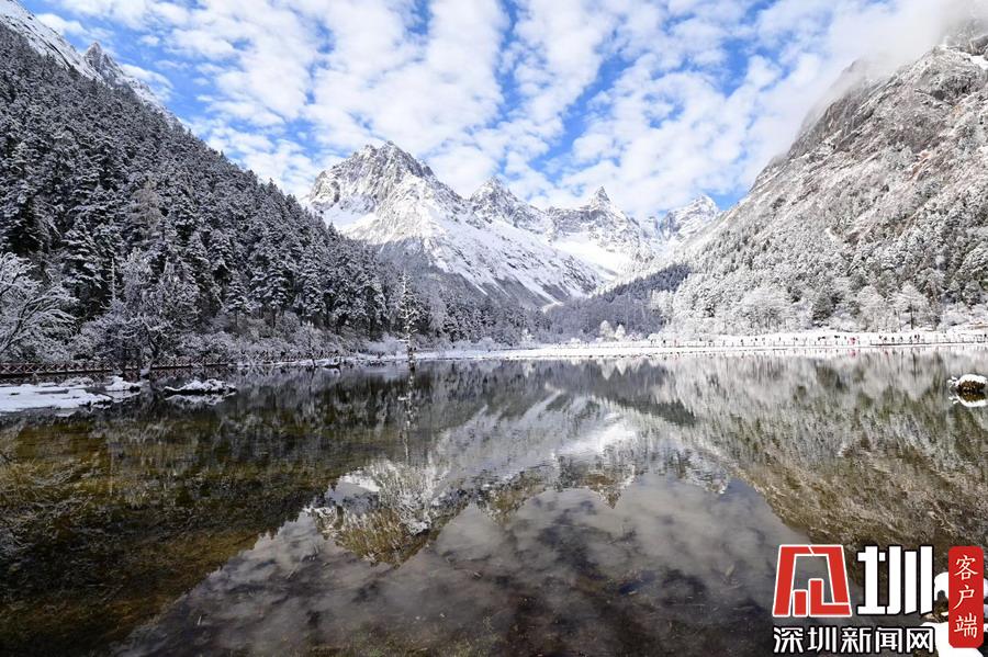 四川畢棚溝降雪 一夜美成天堂